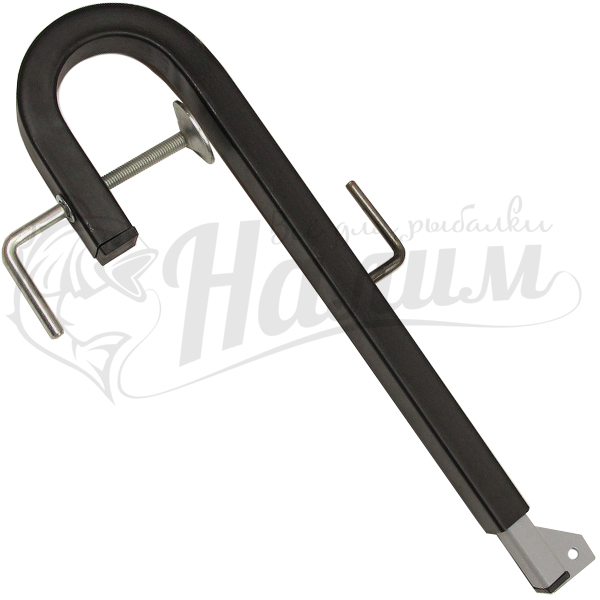 Полезное приспособление, с помощью которого можно прикрепить датчик эхолота к ПВХ лодке. Форма представляет собой кронштейн из надёжного металлического сплава. С одной стороны он закруглённый (с креплением на струбцину), а с другой расположена небольшая площадка под крепление болтом (в комплект не входит).