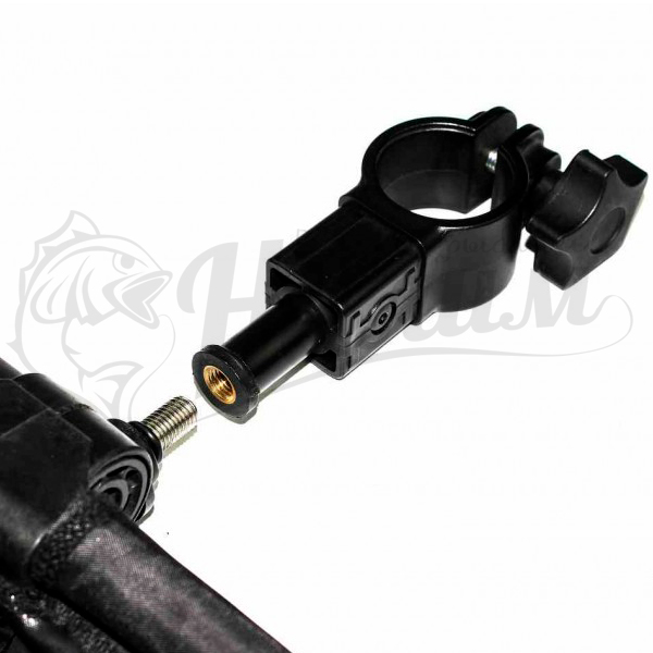 Удобное универсальное крепление, которое позволяет надёжно закрепить садок на кресле, чтобы он всегда был под рукой. Посадочный диаметр 36 мм рассчитан на кресла с аналогичным диаметром ноги. Материал крепления - пластик. Положение садка регулируется.