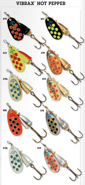 Блесна имитирует насекомое, для чего на лепесток нанесен ряд ярких точек (красных, желтых или черных). Цвет самого лепестка либо металлический (серебро, золото, медь), либо черный матовый. Применяют приманку во время массового вылета насекомых. Среди трофеев - форель, язь, голавль, крупный окунь и даже плотва, лещ. Особое внимание в средней полосе следует обратить на черные варианты приманки: они потрясающе уловисты в июне и июле. Все блесна выполнены из качественного материала, тройник фирмы VMC.