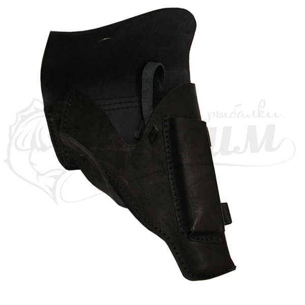 Кобура из высококачественной натуральной кожи с отделом для запасного магазина. Надёжно крепится на поясном ремне и закрывается клапаном.