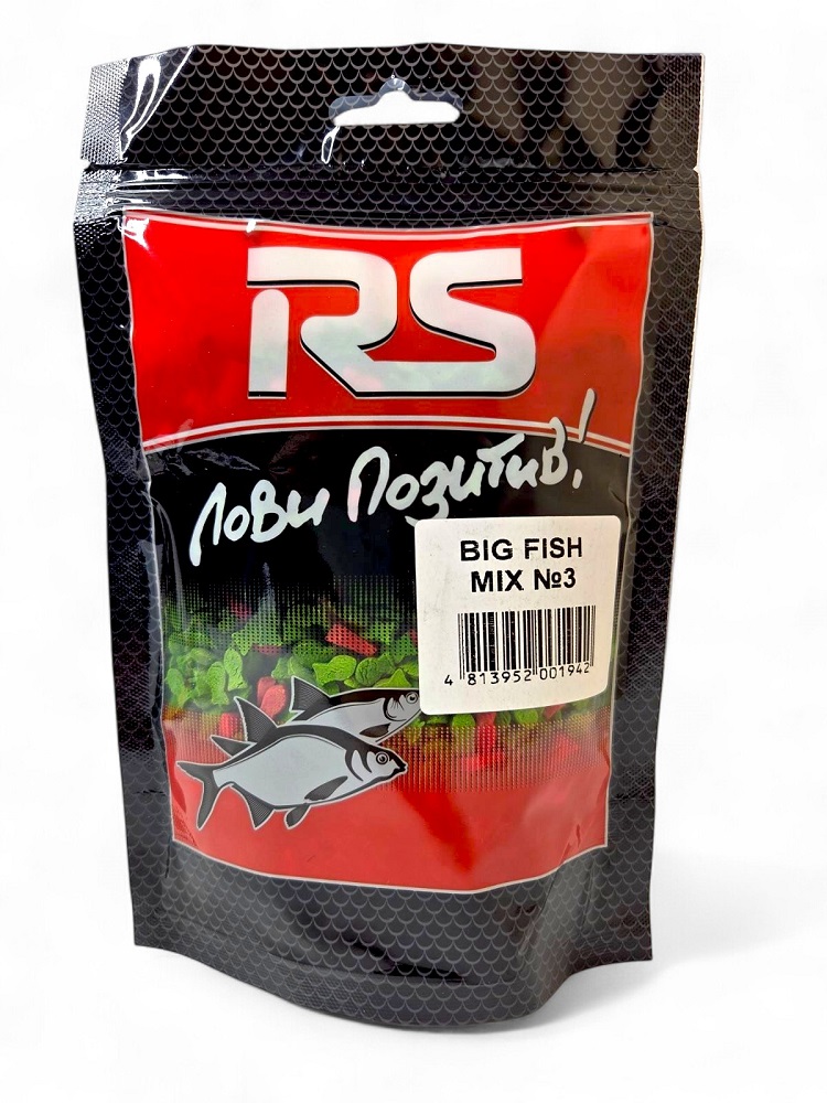 Добавка RS Big Fish Mix № 3 состоит из питательных кормовых частиц и используется для укрупнения фракции прикормочной смеси.