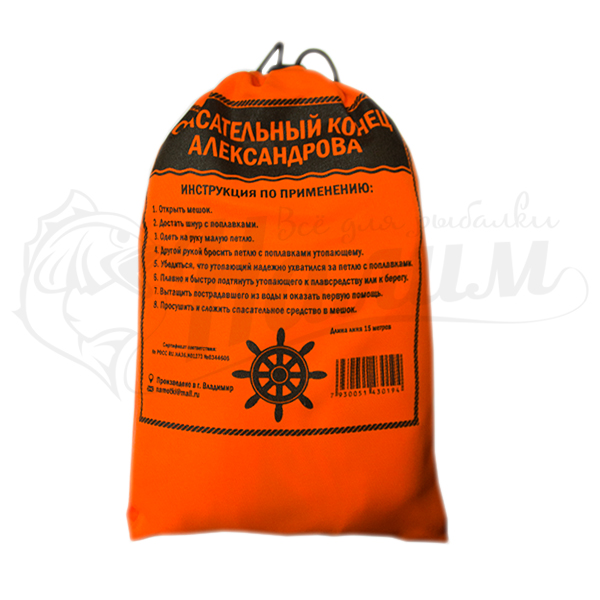Инструмент, который необходим для спасения утопающего. Изготавливается из полипропиленовой плавающей веревки длиной 15 метров (диаметр троса – 6 мм). Убирается в удобный чехол. Алгоритм применения: