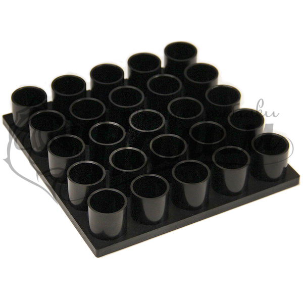 Надёжная подставка, которая позволяет удобно, устойчиво зафиксировать боеприпасы во время снаряжения. Не даёт гильзам вывалиться, т.к. они становятся идеально вертикально. Состоит из двадцати пяти ячеек, изготавливается из высокопрочного пластика.