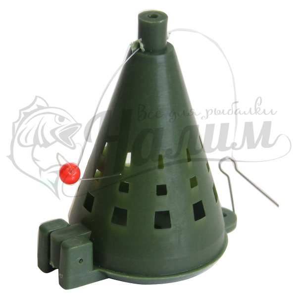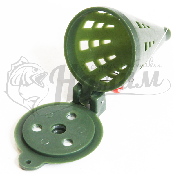 Зимняя пластмассовая кормушка - это распространённый тип кормушки с откидывающимся дном, предназначена для прикармливания рыбы при зимней ловле на водоёмах без течения, можно использовать и при ловле летом.