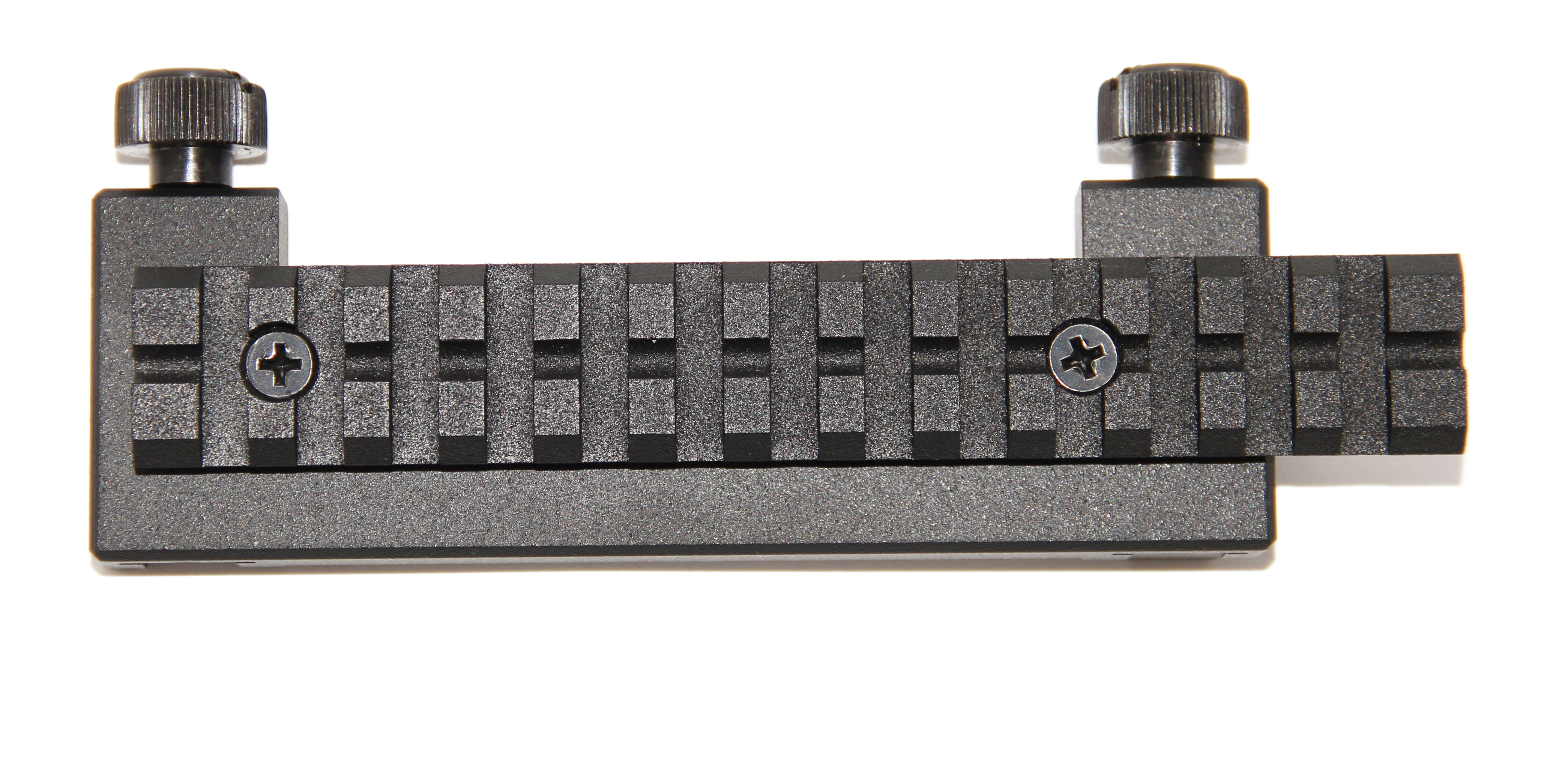 Выкрутить на несколько оборотов 2 гайки. Установить кронштейн на планку оружия в необходимом месте. Вставить ползун в паз. Закрутить крепежные гайки вручную, затем дожать отверткой.