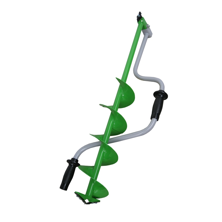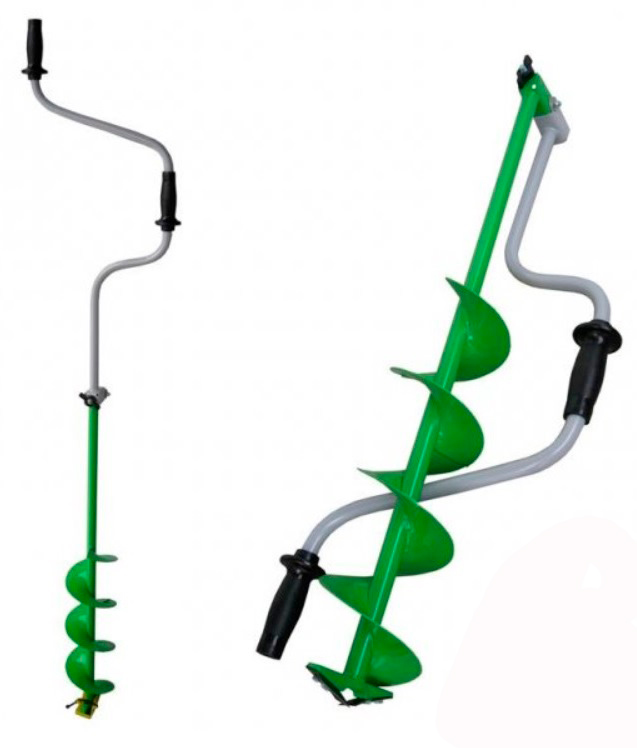 При заказе уточняйте цвет! Ледобур это незаменимая вещь на зимней рыбалке. Ледобур представляет собой шток с ручкой на конце, вокруг штока спиралью идет металлическая лента, на конце которой под углом расположены ножи. Ледобур "HELIOS" - это складной, двуручный ледобур с левым вращением. Верхняя рукоятка ледобура смещена относительно оси ледобура на 130 мм, а нижняя на 155 мм. Такое расположение рукояток позволяет вращать ледобур одновременно двумя руками, тем самым облегчая процесс бурения лунок во льду.