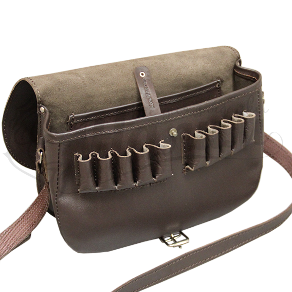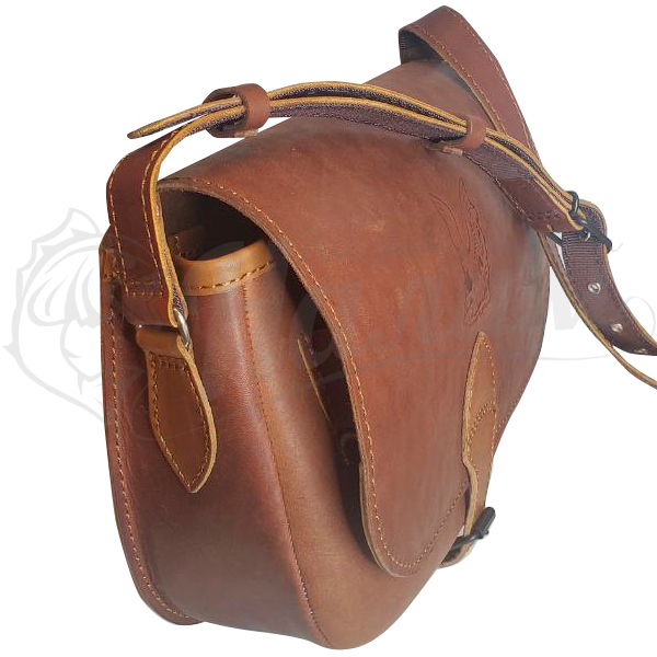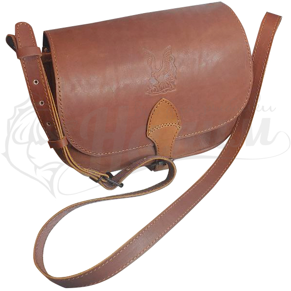 Специальная сумка для переноски различных охотничьих инструментов, выполненная из натуральной кожи. Удобно носится на регулируемом ремне через плечо. Состоит из одного отделения, внутреннего кармана для документов и патронташа на 10 патронов 12 калибра.