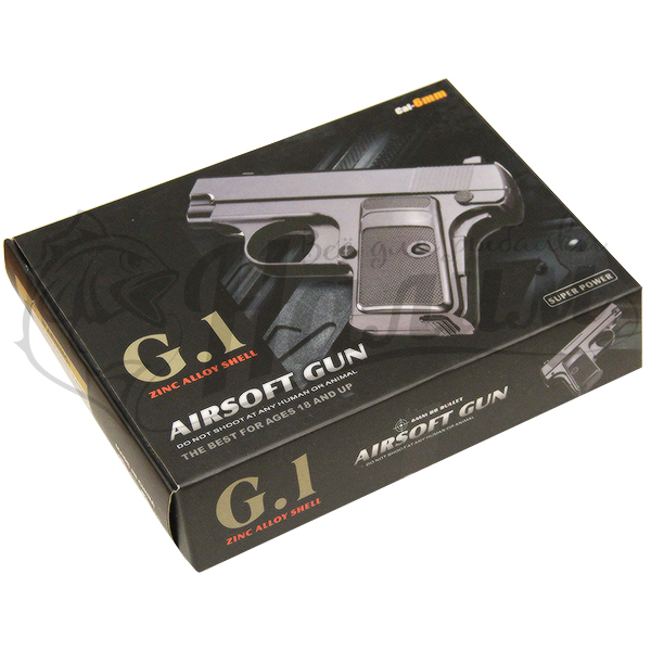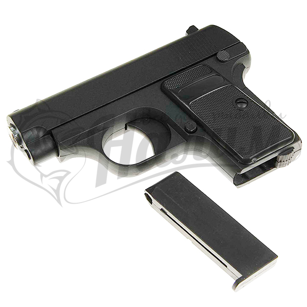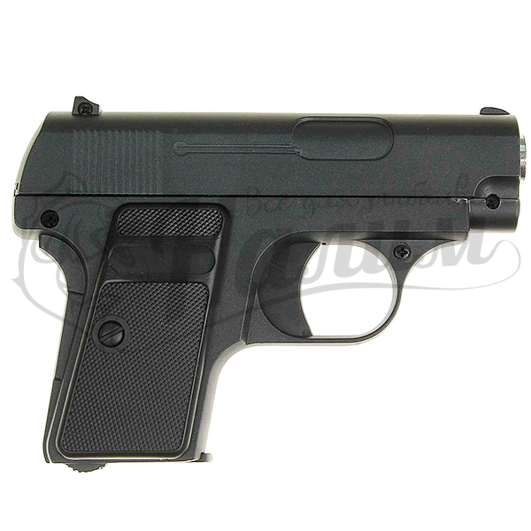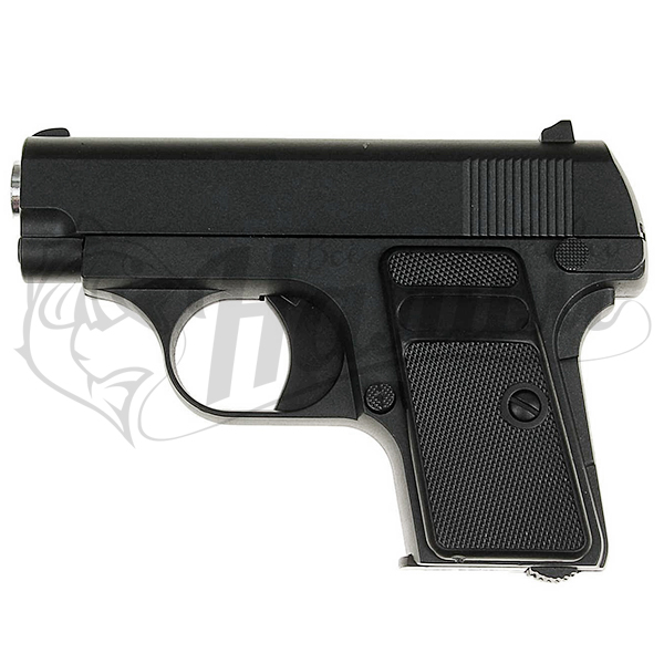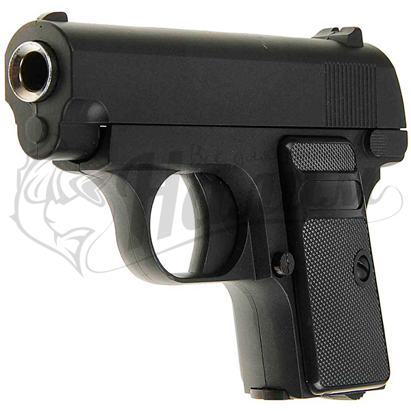 Спринговый пистолет для страйкбола, который является репликой на боевой оригинал Кольт 25 мини 1908 года выпуска. Изготавливается из цинкового сплава (дуло) и специального оружейного ABS-пластика (корпус). Несмотря на очень демократичную стоимость, обладает отличными характеристиками. Механизм пружинного типа. Начальная скорость вылета боеприпаса составляет где-то 60-69 м/с. Рассчитан исключительно на одиночную стрельбу.