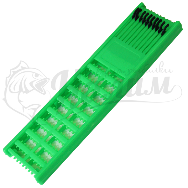 Удобная поводочница, изготовленная из пластика. Очень простая в использовании: петля поводка цепляется за крючок, потом этот крючок крепится к специальным зацепам.
