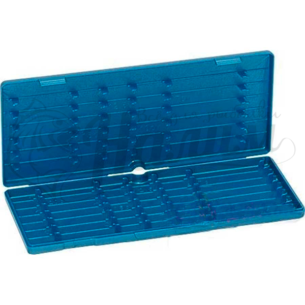 Поводочница, изготовленная из качественного прочного пластика. Подходит для хранения множества поводков разной длины (от 10 до 30 сантиметров). Лёгкая, имеет 13 крепёжных положений. Размер опорных штифтов достаточен по диаметру и по длине, чтобы можно было закрепить крючки и петли даже небольших размеров. Габариты: 335 x 100 x 17 мм.