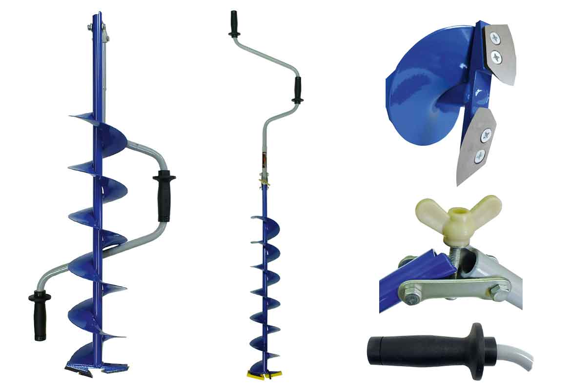 Материал ручек – «тёплый» морозостойкий пластик. Фиксаторы ручек (полиамид), обладают высокой прочностью, обеспечивают надежное крепление, а также легкость скольжения при вращении ледобура.