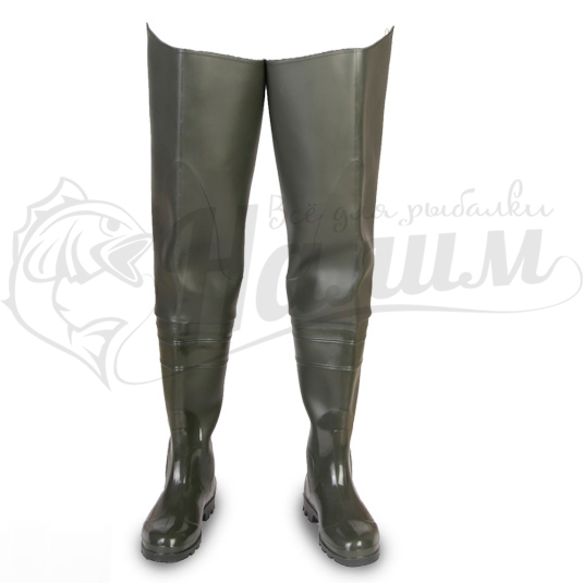 Высокие рыбацкие сапоги из ПВХ материала. Подошва высокая, прочная, отличается глубоким рисунком протектора, благодаря которому можно с удобством ходить по различным неровностям, камням, веткам по различным местностям. Сапоги по всей длине изготавливаются из поливинилхлорида 1.5 мм толщиной. Подходят для комфортной носки в период с апреля по октябрь.