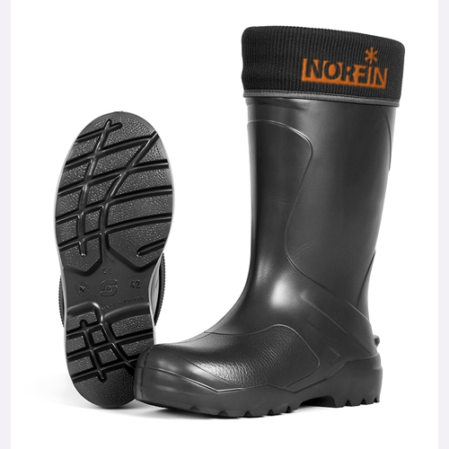 Сапоги из материала EVA устойчивы к воздействию влаги, низких температур, очень легкие и износостойкие, обеспечивают термозащиту в динамике при температуре до -10°С. Сапоги Norfin Element имеют вынимаемый термоизоляционный вкладыш, обеспечивающий сохранение тепла. В летнее время данные сапоги можно носить без внутреннего вкладыша.