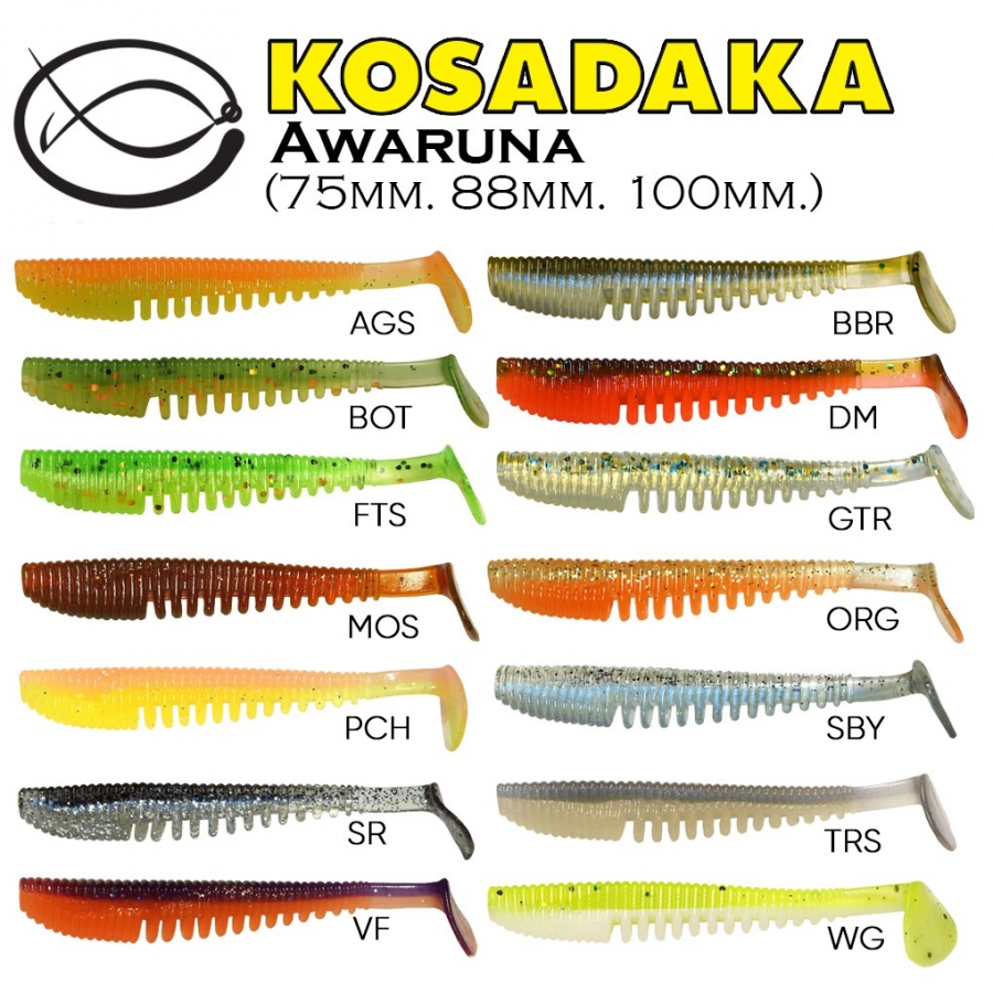 Виброхвост Kosadaka Awaruna 88 имеет крупное, ребристое тело. Подвижный хвост красиво колеблется во время проводки, а выступающие “ребра” на брюшке повышают заметность приманки для хищника. Виброхвост можно проводить с любой скоростью. Awaruna может оснащаться джиг головкой, двойником или офсетником. Также ее можно использовать в каролинских, техасских монтажах и оснастках типа дроп-шот. Приманки изготовлены из “съедобного” материала с добавлением аттрактанта. Подходят для ловли щуки, крупного окуня.