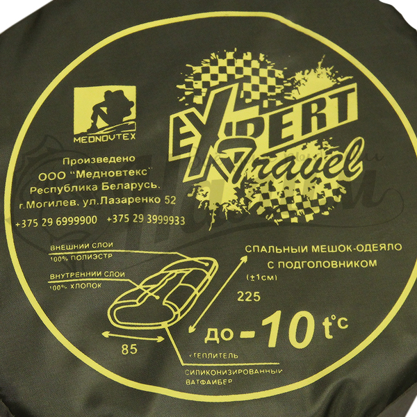 Удобный и теплый спальный мешок Медновтекс Эксперт до -10 °C. Вшитая молния позволяет расстегнуть мешок с двух сторон и использовать его как одеяло. Оптимальная ширина (85 см) спальника для комфортного отдыха. Внешний материал выполнен из прочной ткани 100% полиэстер, внутренний слой 100% хлопок. Утеплителем служит силиконизированный вайт-файбер, материал не сбивается и не впитывает влагу. Спальный мешок укладывается в сумку из плотного материала.