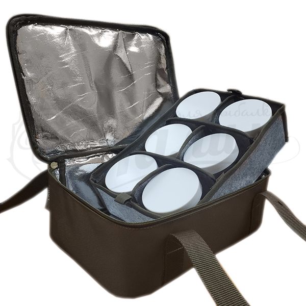 Термо-сумка из высококачественного износостойкого нейлона с прорезиненным дном, благодаря чему её можно легко отмыть от загрязнений. Данная модель укомплектована банками для хранения насадок и дипов (6 шт., диаметр 89 мм, высота 80 мм). Внутри сумка покрыта технологичным термоизоляционным материалом. Карманы по бокам и верхняя крышка на молнии, регулируемый плечевой ремень из прочной стропы. Размер: 32х23х15 см.